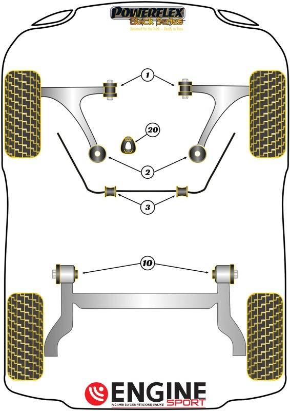 POWERFLEX – Supporti, Tasselli, Tamponi, Boccole per sospensioni in poliuretano e accessori per la regolazione della campanatura dell’auto